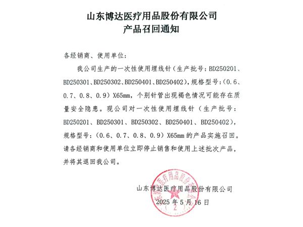 山東博達(dá)醫(yī)療用品股份有限公司是生產(chǎn)可吸收性外科縫線專業(yè)廠家,主要產(chǎn)品有可吸收縫合線 、內(nèi)窺鏡圈套線、穴位埋線、快吸收美容線、醫(yī)用羊腸線 膠原蛋白線以先進的生物技術(shù)提取了健康哺乳動物內(nèi)臟的膠原蛋白為基材,采用先進的工藝加工而成,線體的主要成分為高純度膠原蛋白,并獲得了國家發(fā)明專利,頒布了YZB/國6301-2013《可吸收性外科縫線》產(chǎn)品標(biāo)準(zhǔn),并通過了ISO9001:2015和ISO13485:2016質(zhì)量管理體系認(rèn)證。